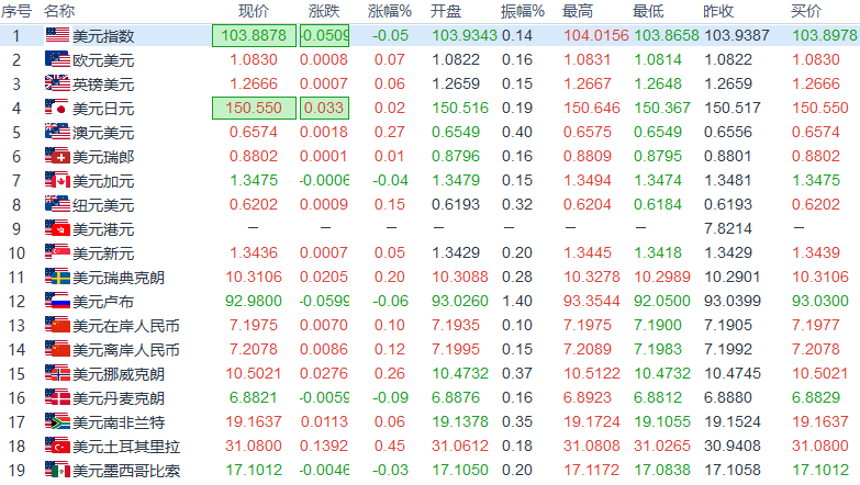 | 美元/日元 | 美元/瑞郎 | ||