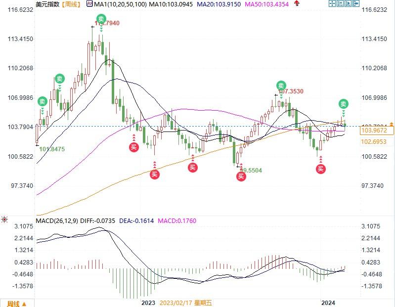 美元指数周五报103.93点,当日变化不大,周跌幅0.29%。
