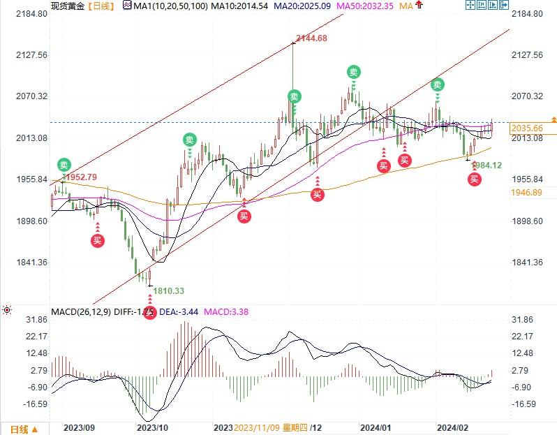 现货黄金突破2040美元/盎司,为2月7日以来首次。