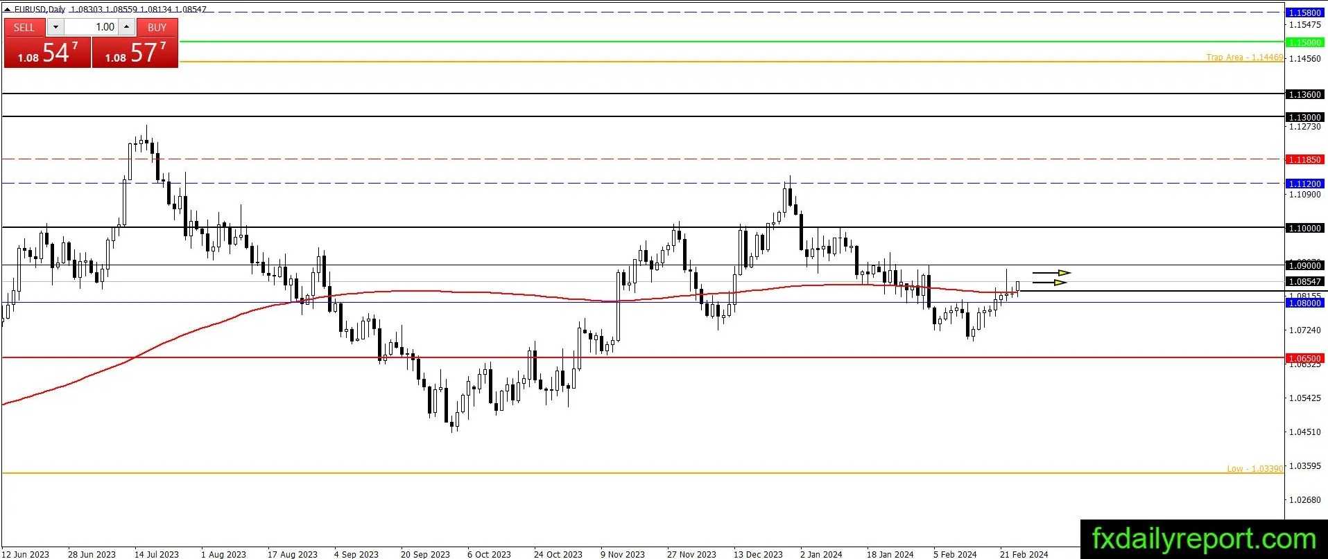 欧元/美元 正试图再次上涨至200日移动平均线上方,朝着1.0900方向发展。当该货币对收盘超过200日移动平均线时,将回归其牛市趋势。然而,如果收盘低于200日移动平均线或1.0800,则可能出现向1.0650下跌的可能性,然后再继续牛市趋势。