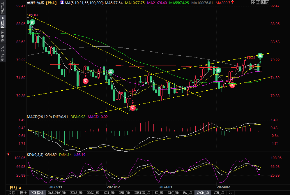 布伦特原油4月期货周一收涨0.91美元,或1.11%,结算价报每桶82.53美元。美国原油4月期货(WTI)周一收涨1.09美元,或1.43%,报每桶77.58美元。