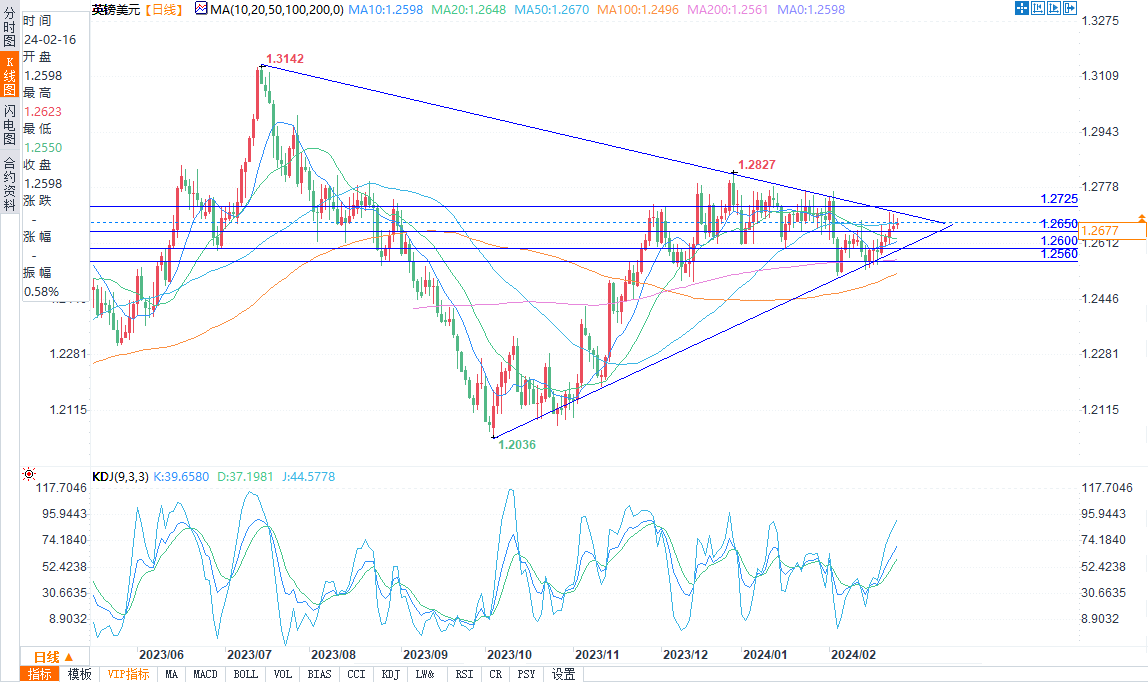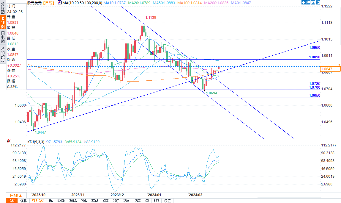 欧元区通胀数据将于周五(北京时间3月1日18:00)公布,预计CPI将从1月份的2.8%降至2.5%。尽管通胀朝着欧洲央行2%的目标进一步降温,数据显示欧元区经济持续低迷,但欧洲央行一直不愿谈论降息,这为欧元提供了一些支撑。