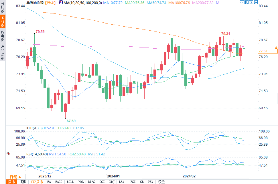 WTI原油期货周一在200日移动均线找到支撑,这个长期趋势指标目前位于76.45美元,今明两天多空双方可能继续对200日移动均线进行争夺。