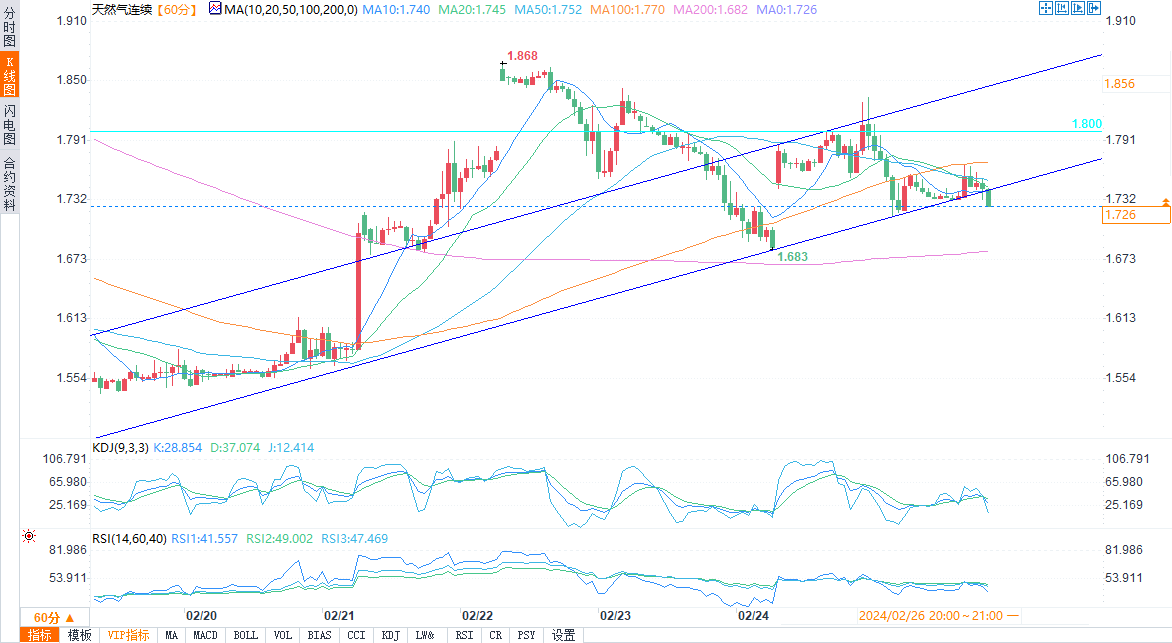 天然气价格最近稳定在1.560支撑线上方,目前价格反弹至1.75美元附近。