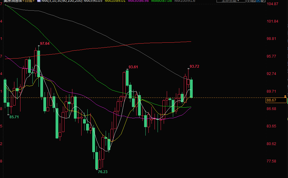 布伦特原油期货下跌2.6%,至每桶95.36美元。美国原油期货下跌3.14%,至每桶88.91美元。美国期金收涨2.1%,报每盎司1716美元。