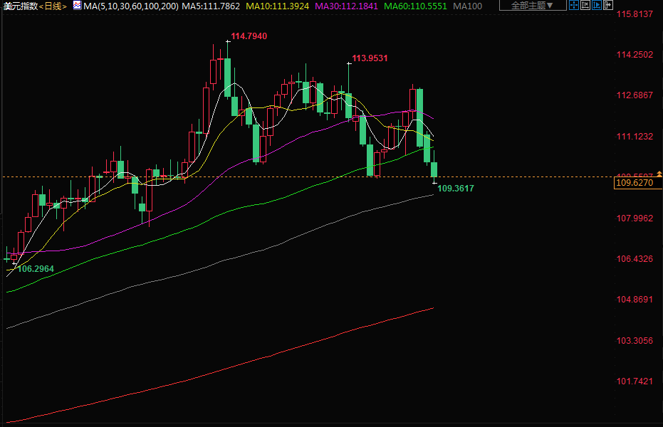 美元指数交投于109.61附近 ;美元周二下跌,德国国债收益率攀升推动欧元走强,但如果本周稍晚出炉的美国消费者物价指数(CPI)很强劲,可能会扭转美元的跌势,市场正在关注美国期中选举,结果很可能会使华盛顿进入一个国会政府两党分治的时代,金价上涨超过2%,突破每盎司1700美元的关键水平,此前美元和美债收益率下跌,市场有一些技术性买盘。油价下跌超3%,燃料需求的担忧不断加深,同时对美国期中选举结果也感到紧张。