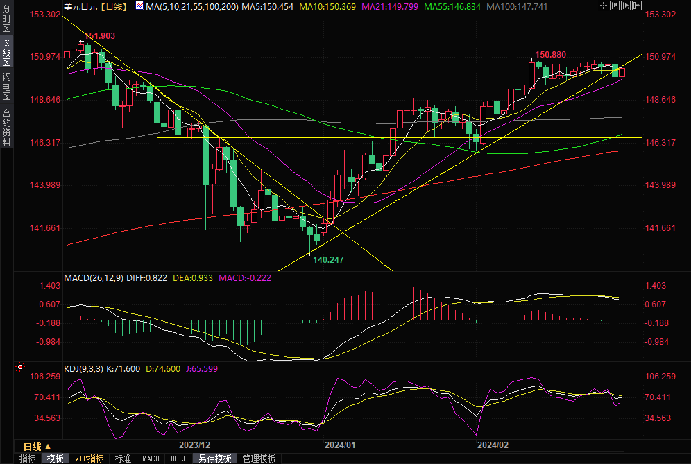 美元兑日元收复150关口后,有望再度向11月高点151.90关键位置发起冲击,2022年10月份汇价也曾涨至该位置,是近30年高位阻力所在,当时引发了日本央行出手干预。