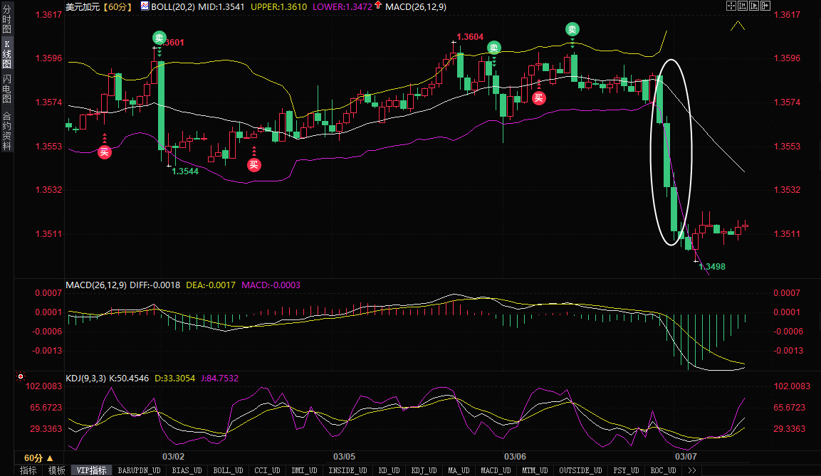 5. 市场反应:美元/加元短线下挫30点至1.35368,最低至1.35244。