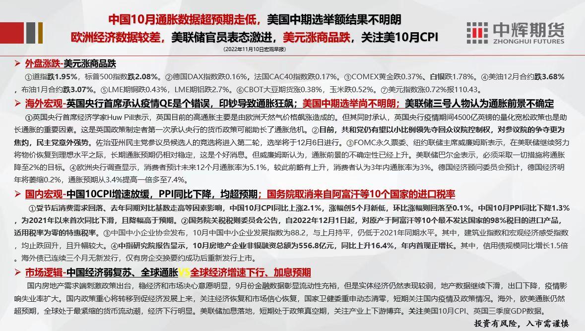中辉期货宏观早报:欧美通胀仍然超预期,全球经济下行明显,关注美国CPI和英国GDP数据