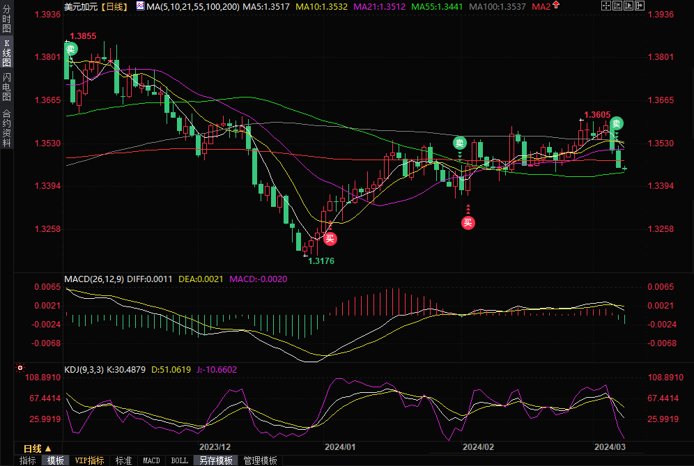 美元兑加元最低触及1.3446,为2月22日以来新低,跌幅约0.08%。