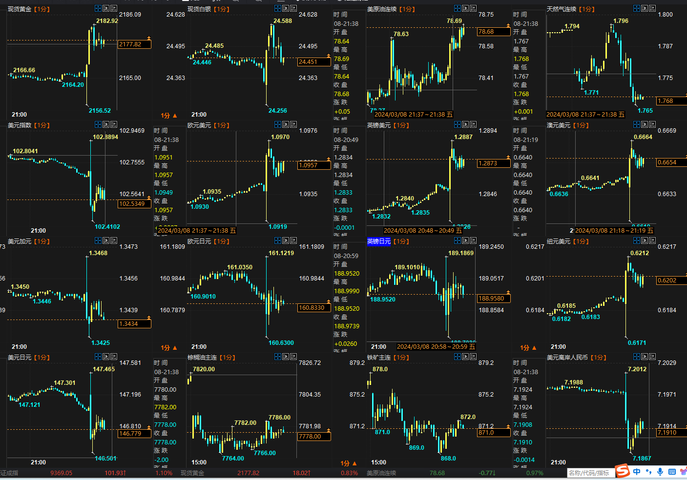 今晚的非农发布后,黄金白银欧元等非美资产短暂下探后急速转为飙升。刚刚汇通财经21:39的快讯显示,一张图看非农后金银原油天然气外汇棕榈油短线市场反应:非农虽强于预期但整体创数月低位,黄金等非美资产急涨。黄金1分钟内一度跌近9美元至2156.20但急速跳涨26美元并创历史新高至2182.26,。白银出现类似涨势。美国原油小涨至78.64美元/桶。美国2月季调后非农就业人口录得增加27.5万人,为2023年11月来新低,但远高于市场预期中值20万。美国2月失业率升至3.9%,为2022年1月来新高,劳动参与率下降0.1个百分点至62.5%。当时各品种短线走势图详见下方: