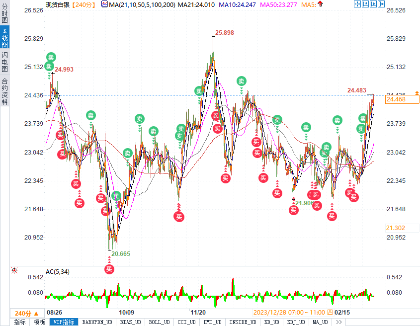 昨日银价显著上涨,并接近目标价位每盎司24.60美元。目前,随机指标发出负面信号,可能导致银价出现短暂的横盘波动。若银价能够恢复上涨走势,并突破上述水平,进一步升至每盎司25.00美元,更高的目标位于每盎司25.50美元。