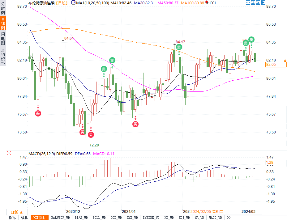 布伦特5月原油期货收跌0.91美元,跌幅1.10%,收报82.05美元/桶。本周累计下跌1.69%,一周波动幅度创自2021年9月以来最低。