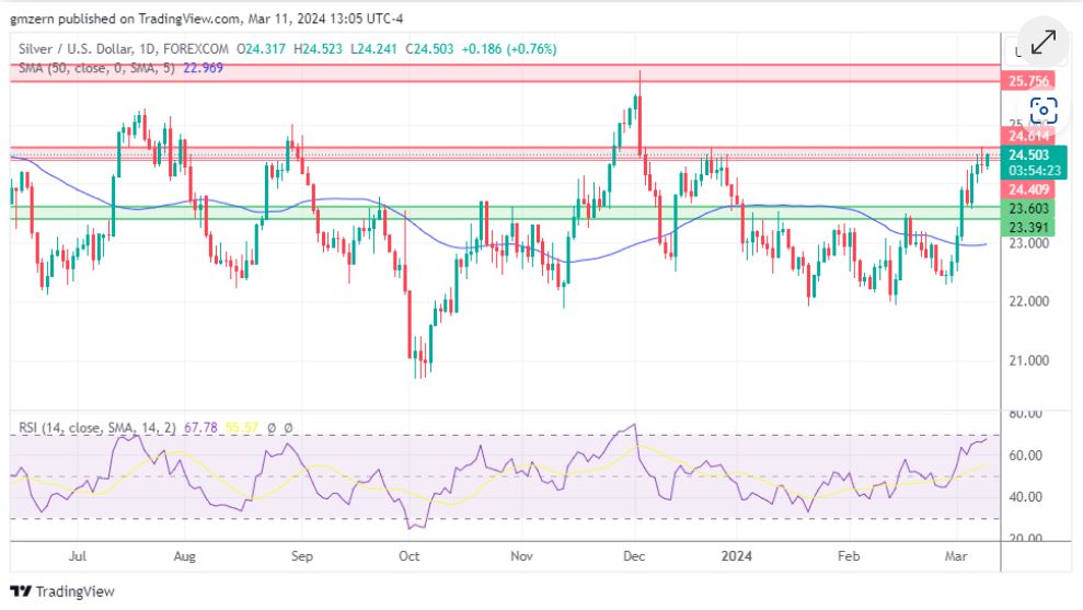 成功测试24.40美元/盎司至24.60美元/盎司的阻力位将为测试下一个阻力位25.75美元/盎司至26.00美元/盎司开辟道路。