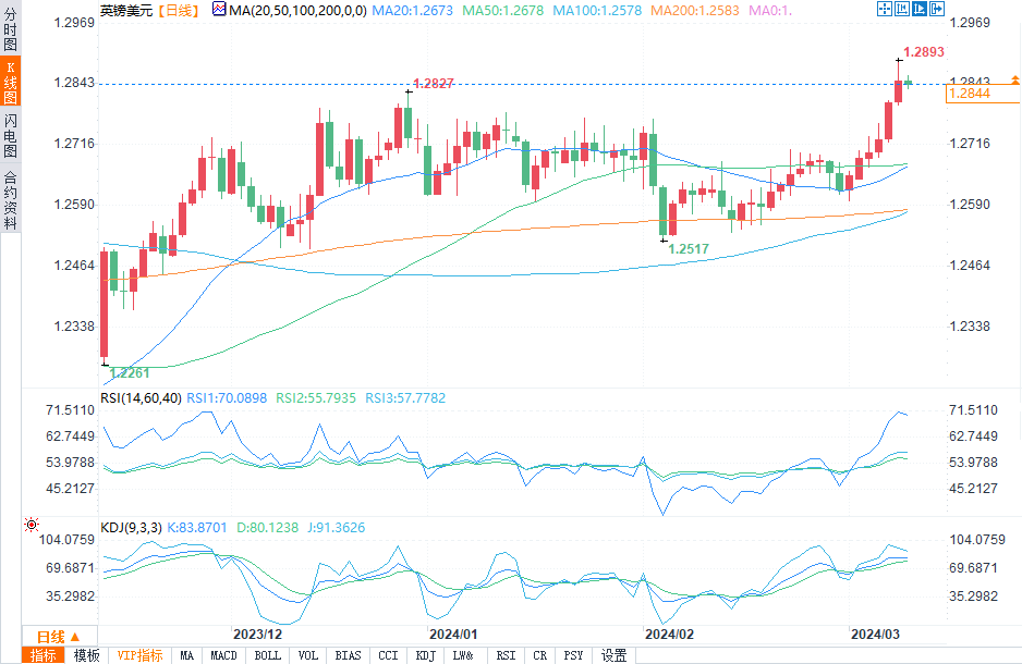 英国预算和美元疲软帮助英镑交易突破1.2800的区间高点。