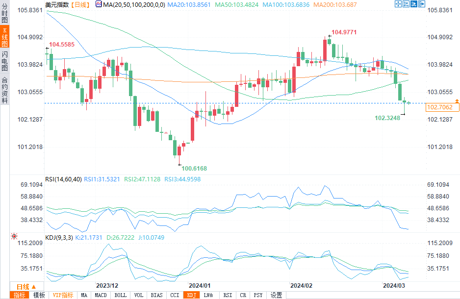 美元指数跌破了上周低点形成的支撑位103.50。价格目前位于102.75附近,如果价格保持在这一水平之上,美元可能从疲软转强。另一方面,如果有效跌破该水平可能引发进一步向102.00的抛售压力。