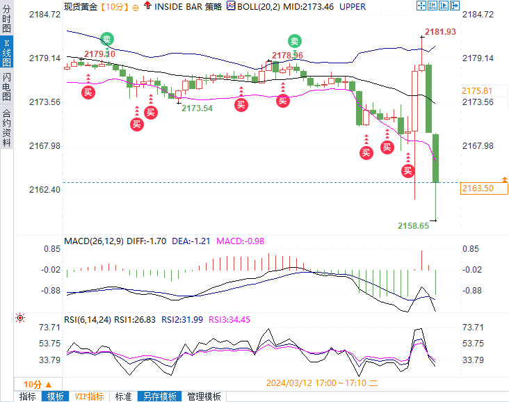 现货黄金短线下挫10美元后迅速反弹收复跌幅后持续走强,短线波幅近32美元,最高触及2181.93美元,后黄金再度跳水20美元,接连下破2170、2160两大关口。波动接近50美元。总体和核心指标的同比通胀率都比经济学家预测的要高一些,这令市场在一开始的震惊之余开始担心美联储能否在内年降息3次。