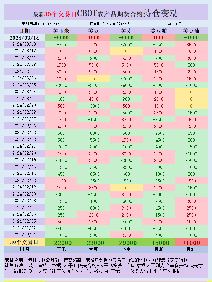标题:CBOT持仓:美麦或三周连跌,基金增加美豆净多头