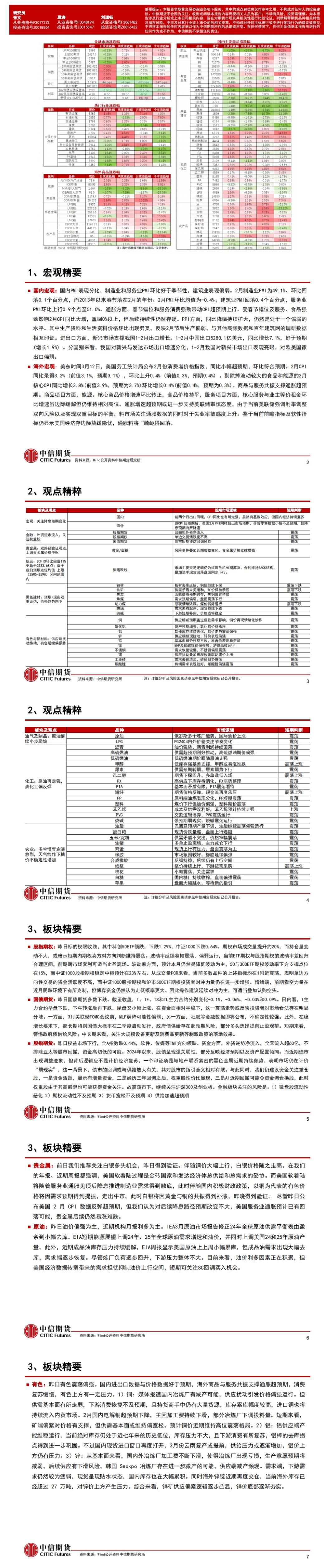 标题:中信期货3月15日晨报:美国PPI超预期回升,基本金属涨跌不一,黑色仍下行