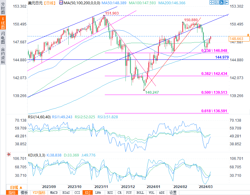 汇通财经APP讯——周五(3月15日),美元/日元冲高回落后v形反弹,盘中报148.382,涨幅0.07%。
