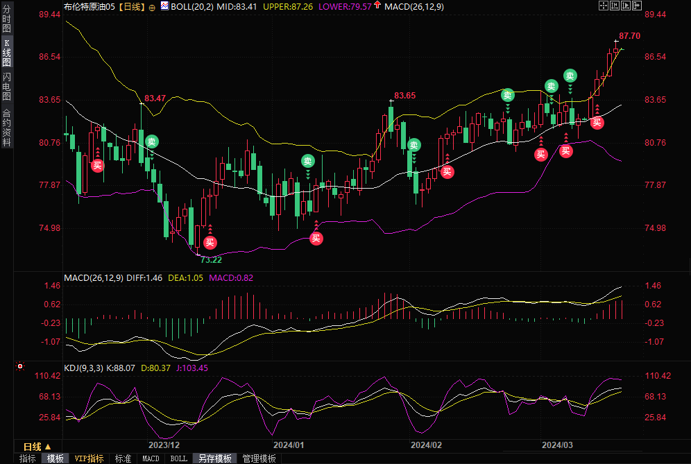 布伦特原油5月期货合约日线图,来源:易汇通)