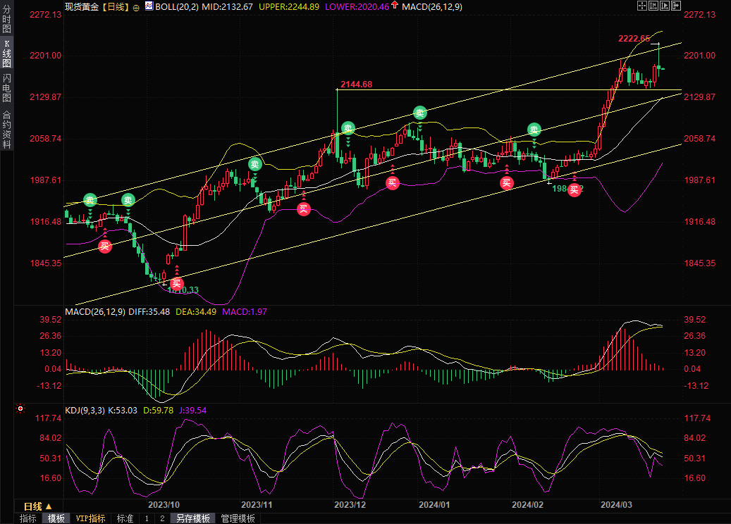 现货黄金窄幅震,目前交投于2181.10美元/盎司。金价周四冲高回落,美联储主席鲍威尔周三暗示将在2024年进行三次降息后,黄金获得了额外上涨动力,一度刷新历史高点至2222.65美元/盎司。但随着