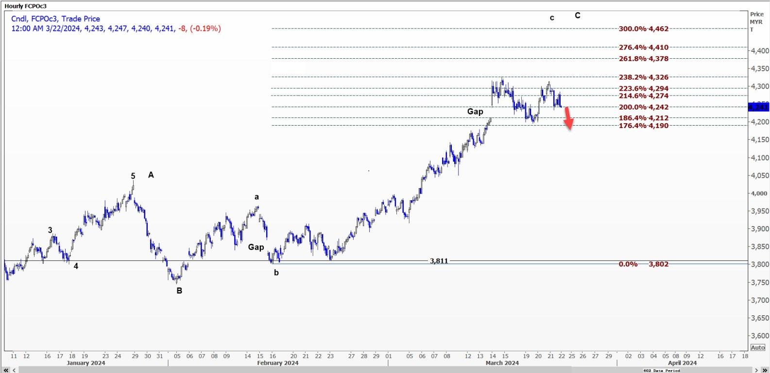 标题:马棕油五周来首次周线下跌,或下探4190?
