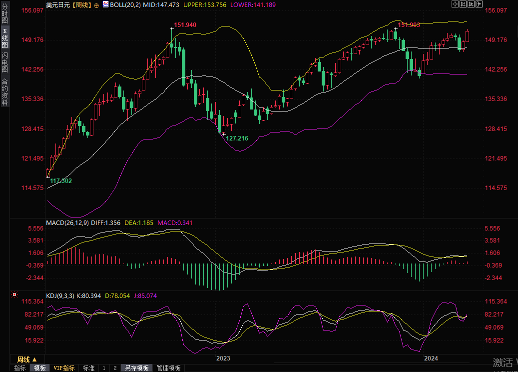 美元兑日元周线图,来源:易汇通)
