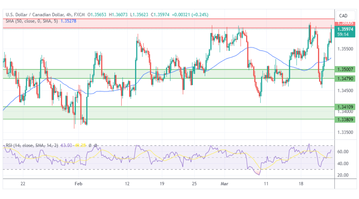 美元/加元随着交易员对贵金属市场广泛回调的关注而上涨。今日交易时段,其他与大宗商品相关的货币也面临压力。若美元/加元攀升并突破阻力位1.3600-1.3620,其将向1.3700水平移动。