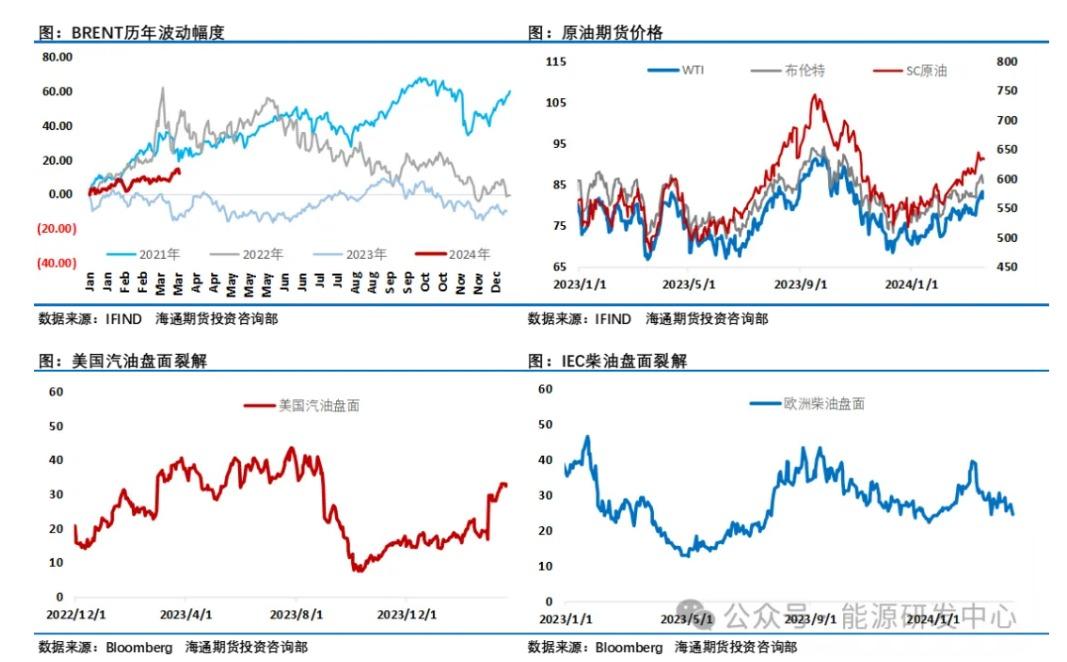 莫斯科州音乐厅恐怖袭击事件成为了全球关注焦点,屠杀平民的行为招致全世界的反对,虽然有极端组织“伊斯兰国”声明称对此事件负责,但俄罗斯方面第一时间将目光对准了乌克兰,并强硬表态一旦有证据被证实,会让相关负责人受到惩罚,这一事件会带来的影响引发了市场的不安,尤其是前期无人机袭击俄罗斯炼厂已经引发了市场对石油市场供应的担忧。进入三月份之后原油市场最为关注的话题莫过于最近二周时间乌克兰持续加大了利用无人机对俄罗斯炼油厂的攻击力度,截至本周末无人机袭击炼厂事件仍在继续。根据此前三方机构睿咨得统计自今年年初以来,俄罗斯40%的炼油产能(280万桶/日)遭到攻击,睿咨得估计,无人机袭击对俄罗斯炼油厂的总影响是50万桶/日左右。目前来看俄罗斯对此好像没有很好的防御办法,但已经开始对乌克兰水电站等能源设施进行报复性打击,乌克兰国家能源公司负责人称周四晚俄罗斯发动的袭击是整场冲突中乌克兰能源设施遭遇的最大规模袭击。据外媒报道美国方面敦促乌克兰停止对俄罗斯能源基础设施的袭击,并警告称,无人机袭击可能推高全球油价,引发报复行动。美国政府已向乌克兰国家安全局(SBU)及其军事情报总局(GUR)的高级官员发出了多次警告。白宫对乌克兰肆无忌惮的无人机袭击感到越来越沮丧,乌克兰袭击俄罗斯西部各地的炼油厂、码头、仓库和储存设施,损害了俄罗斯的石油生产能力。在拜登竞逐美国2024年大选之际,油价今年已上涨约15%。华盛顿还担心,俄罗斯可能会通过袭击西方所依赖的能源基础设施进行报复。这包括将石油从哈萨克斯坦经俄罗斯运往全球市场的CPC管道。俄罗斯宣布“西伯利亚力量”天然气管道将于3月24日至4月1日期间进行维护,计划维护期间将停止天然气供应。对于无人机事件市场的应激反应会影响到石油市场供应稳定性,但目前还存在另外一个逻辑就是俄罗斯炼油能力受损之后,将不得不通过加大原油出口来化解国内原油生成压力,而这对于其配合减产承诺是个考验,而销售这些原油大概率是通过增加折扣来吸引买家,而这会对原油价格形成压制。这一逻辑目前还没有成为市场主流观点,但是一个客观存在的逻辑线。