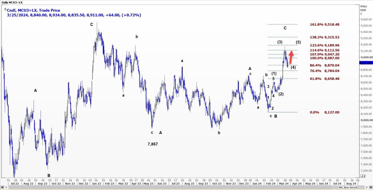 LME铜可能攀升至每吨9113-9190美元的区间。