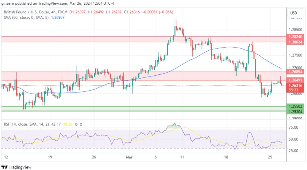 英镑/美元在尝试突破最近阻力位1.2650 – 1.2685失败后,正在失去一些失地。