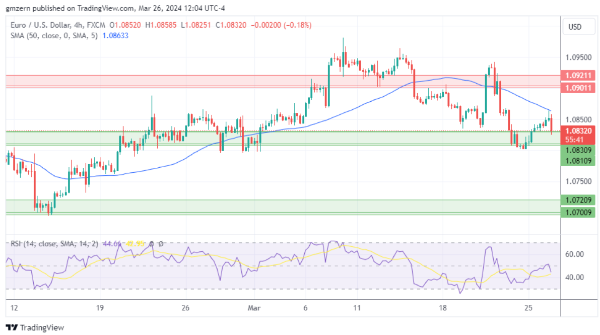 如果欧元/美元跌破最近的支撑位1.0810 – 1.0830,它将跌向下一个支撑位1.0700 – 1.0720。