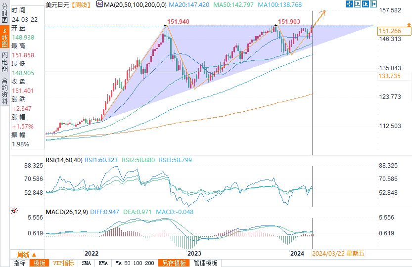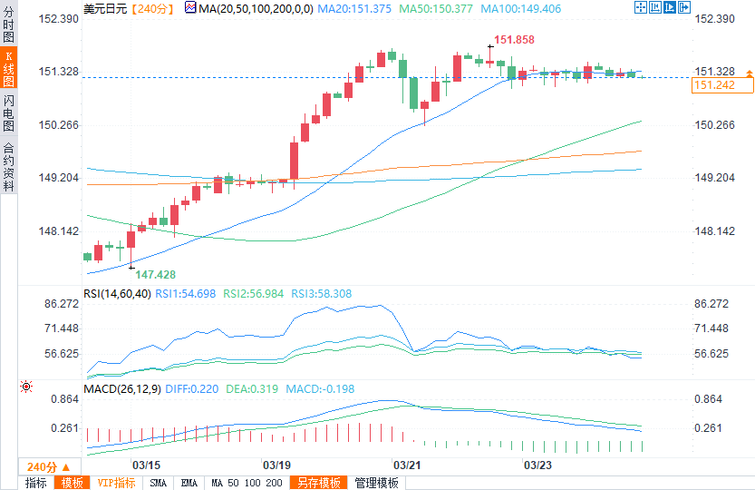 汇通财经APP讯——周二(3月26日),美元/日元继续维持横盘的局面。盘中报151.259/267,跌幅0.10%.