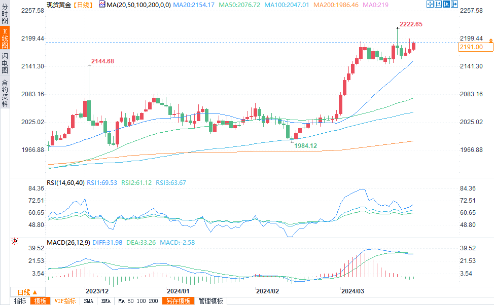 现货黄金价格报2191.76美元/盎司,涨幅0.61%。