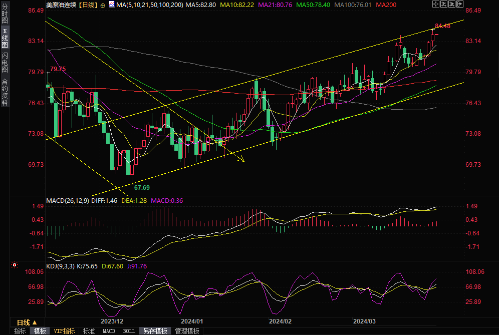 近期来自乌克兰的无人机袭击已击倒了几家俄罗斯炼油厂,这将减少俄罗斯的燃料出口,因为几乎每天有100万桶俄罗斯原油加工能力被关闭。美国重要储油枢纽俄克拉荷马州库欣的供应也收紧,支撑了短期价格。以色列对伊朗驻叙利亚使领馆的空袭造成7人死亡,该事件可能标志着伊朗与以色列之间冲突的重大升级。交易员认为事态发展将推高原油的风险溢价。