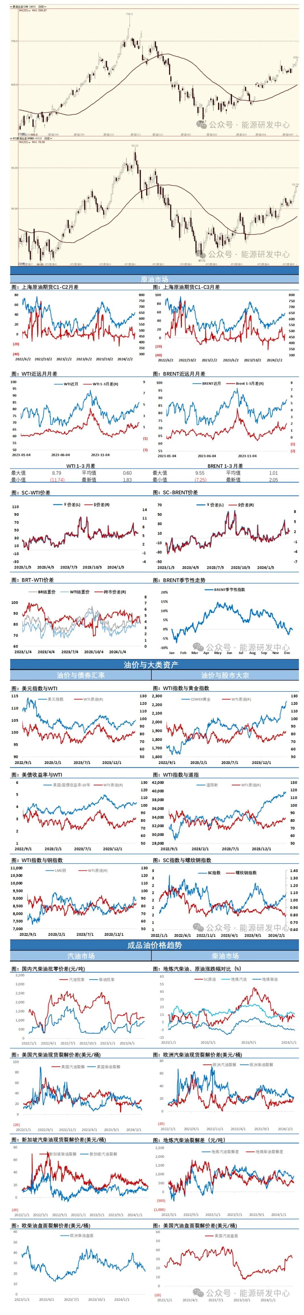 WTI原油期货自去年10月以来首次触及每桶85美元,欧佩克+减产支撑了稳步走强的市场。欧佩克及其盟友的限产措施,加上今年消费前景强劲,帮助推高了油价。中东地区的冲突也导致大量国际航运绕道非洲,以保证船员和货物的安全。近期原油期货合约的交易价格比较远期期货合约的溢价大,表明市场对即时交割的原油需求强劲。
