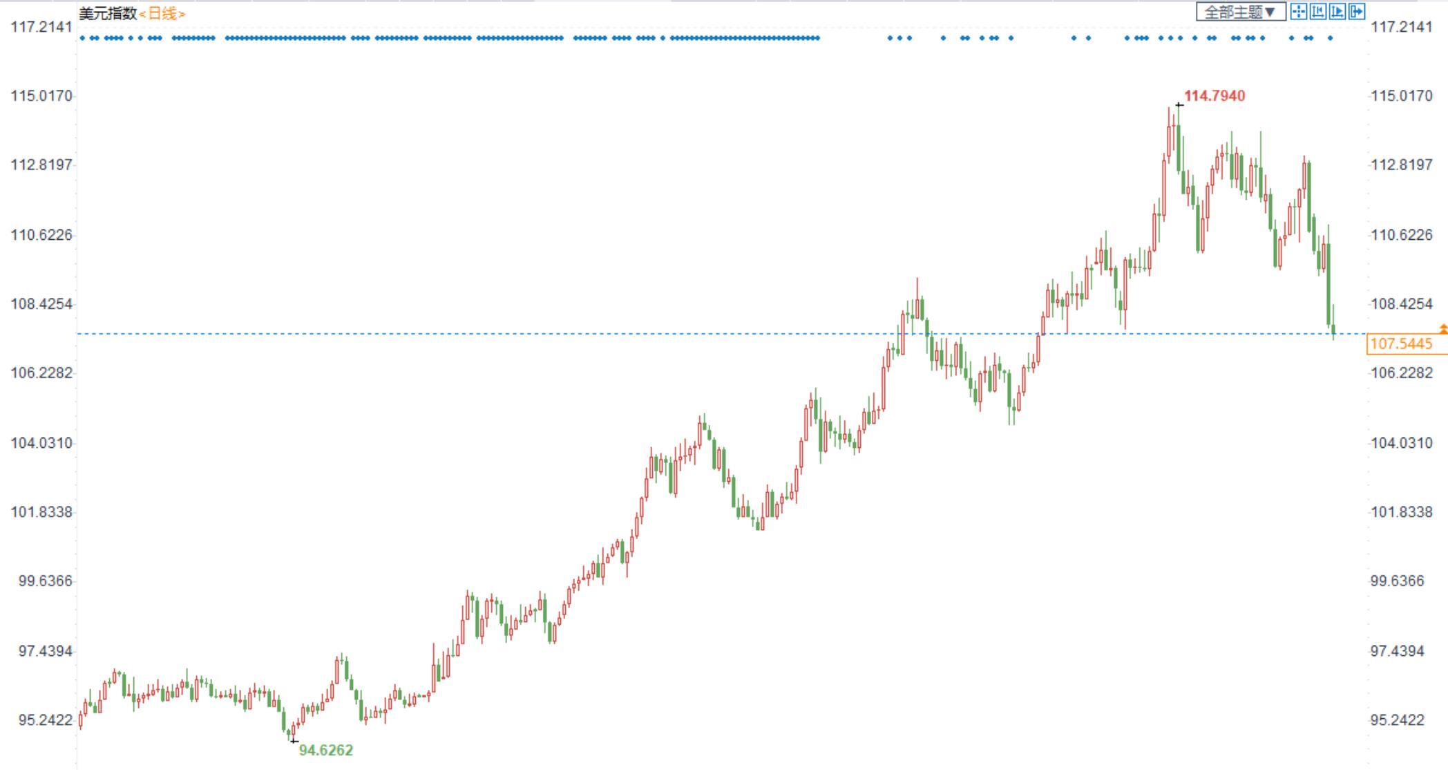 美元指数大幅回落调整,美联储放缓升息步伐的预期给美元下行的压力。不过,全球疫情形势和全球经济衰退的担忧情绪支持了美元长期前景,限制美元下行。