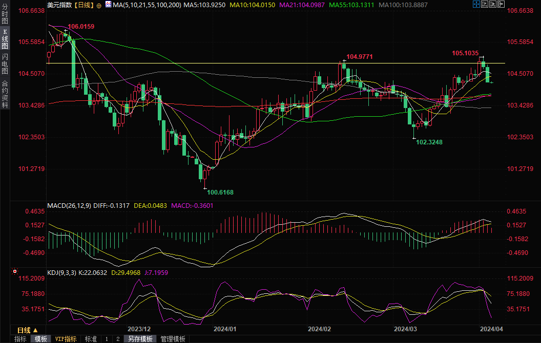 美元指数小幅下探至104.20,为3月26日以来新低。