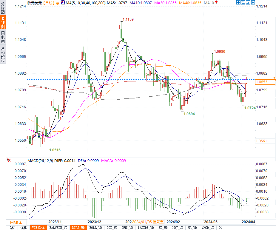 支撑位为103.77、103.54和103.23,这可能会缓冲下行走势。