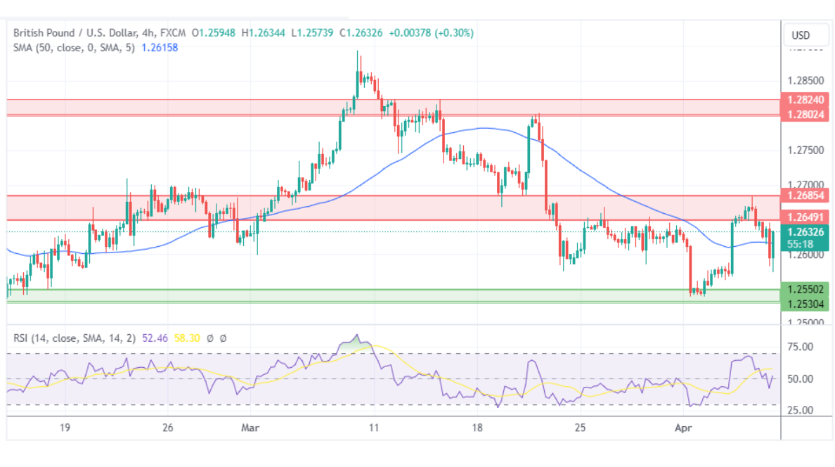 尽管国债收益率上升,但英镑/美元也从盘中低点反弹。如果汇价能够突破阻力位1.2650–1.2685,可能会测试下一个阻力位1.2800–1.2825。