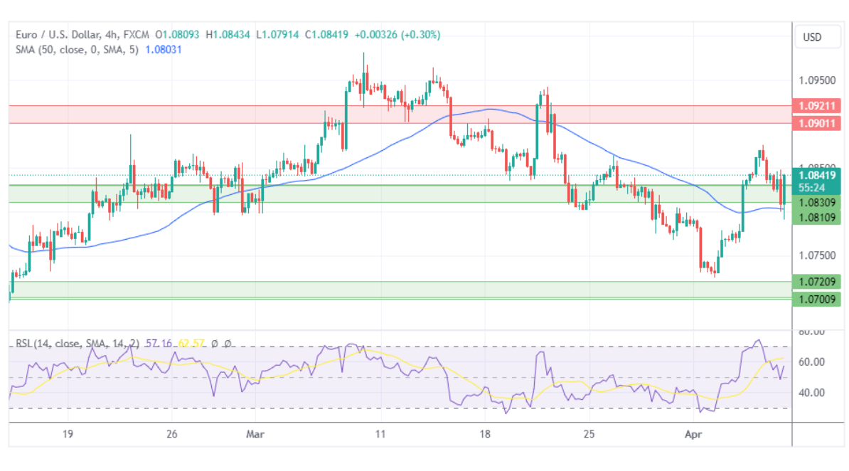 由于美国经济报告的反弹,欧元/美元从盘中低点反弹。但是,欧元区的经济数据并不乐观,因此,欧元/美元可能会受到一定程度的压力。如果汇价能够保持在1.0830水平之上,可能会向1.0900–1.0920的阻力位方向发展。