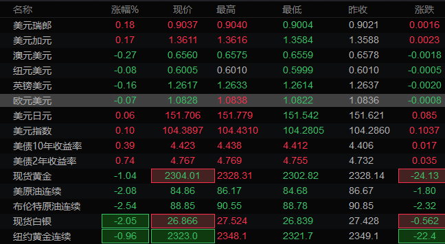 本文提供美元指数、欧元、英镑、日元、瑞郎、澳元、加元及黄金支撑阻力位。