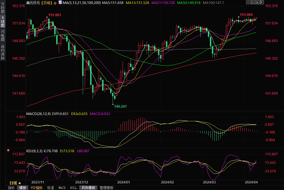 美元兑日元目前在151.78-87区域震荡,相对非常平静,几乎没有交易。