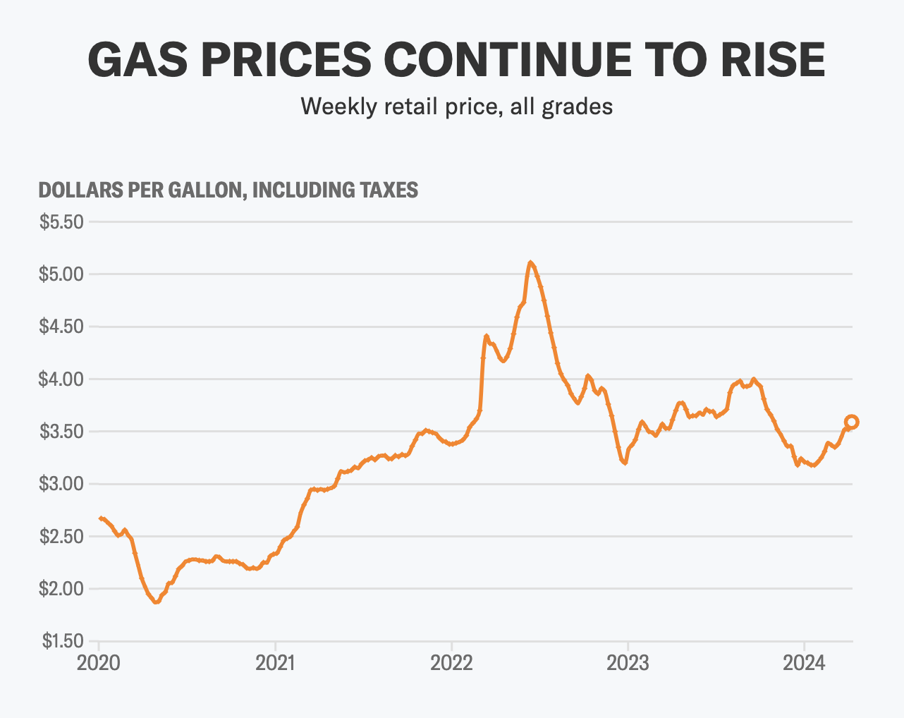 周三,美国全国汽油平均价格为3.62美元,比一个月前上涨0.23美元。