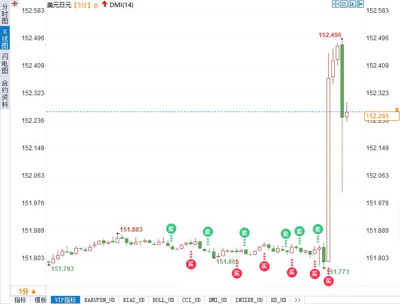 美元兑日元短线走高70点,直线升穿152关口,最高触及152.496,为34年来首次。