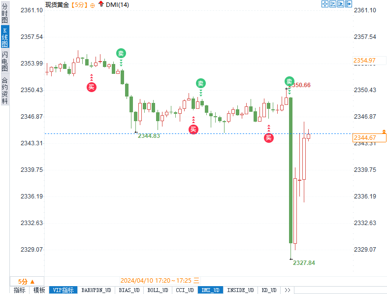 现货黄金短线跳水16美元,最低触及2327.84美元,后迅速反弹,现报2344.47美元/盎司。