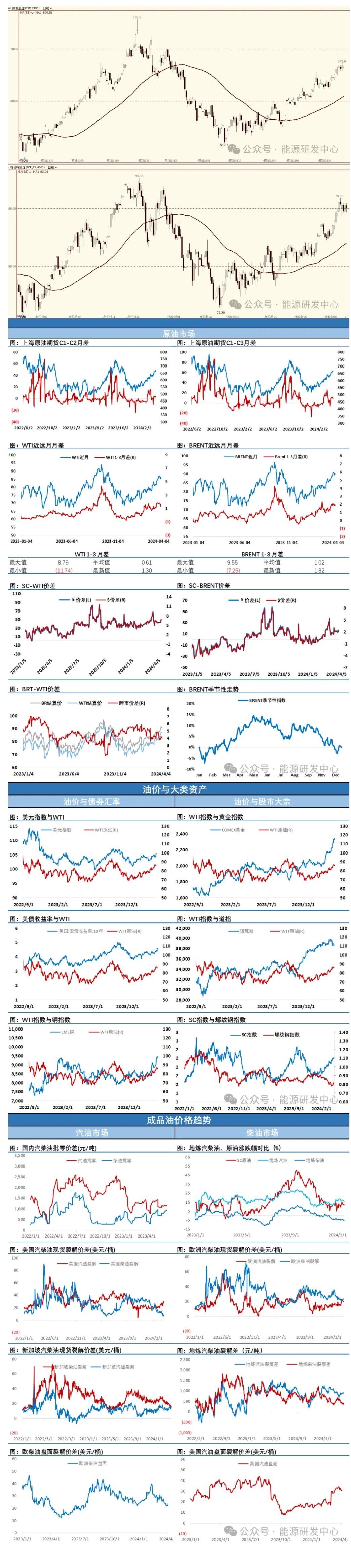 欧佩克公布了4月月报,报告称 3月欧佩克参考篮子(ORB)价格环比上涨2.99美元,达到平均84.22美元/桶,涨幅3.7%。近月ICE布伦特/NYMEX WTI价差进一步收窄85美分,平均为4.26美元/桶。石油期货价格的市场结构加强,并保持现货升水,因为基金经理对石油越来越看涨。欧佩克方面一如既往的对需求预期乐观,认为尽管存在一些下行风险,但2024年全球经济增长仍有进一步上行潜力。在不确定因素持续存在的情况下,夏季石油需求前景“强劲”,虽然欧佩克表达了乐观展望,但油价对此反应平淡。