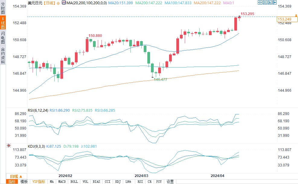 亚市早盘,美元/日元突破153,创下34年新高。由于东京当局重申不排除采取任何措施来应对过度波动,日元的下跌引发了对干预的担忧。