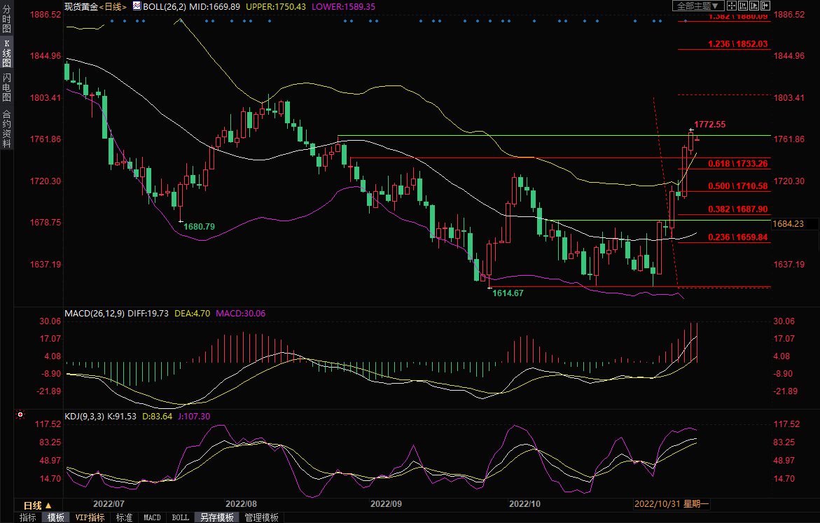 RJO Futures高级市场策略师Bob Haberkorn说,“我们看到金价有后续升势,受消费者物价指数(CPI)数据、美元走软、以及美联储有可能加息50个基点,而不是75基点影响。”